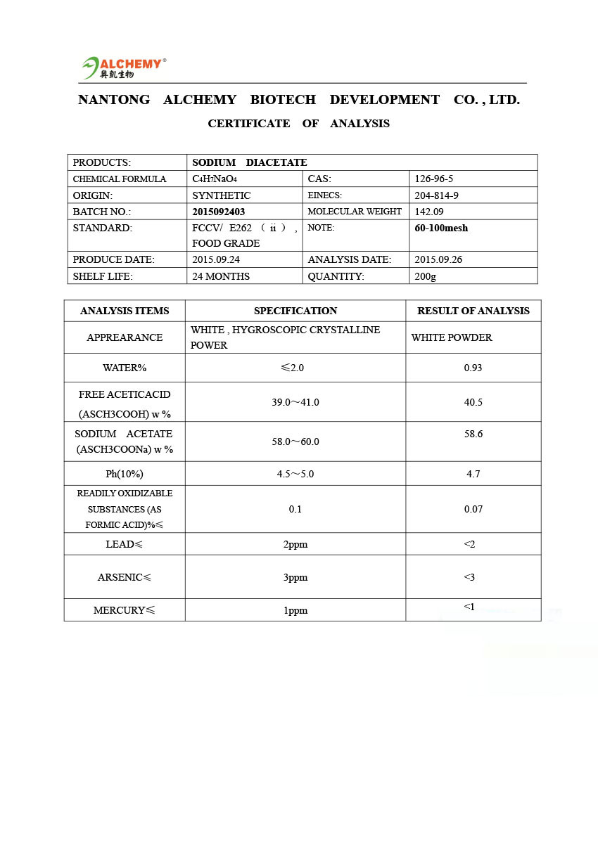 Sodium Hydrogen Diacetate / CAS 126-96-5