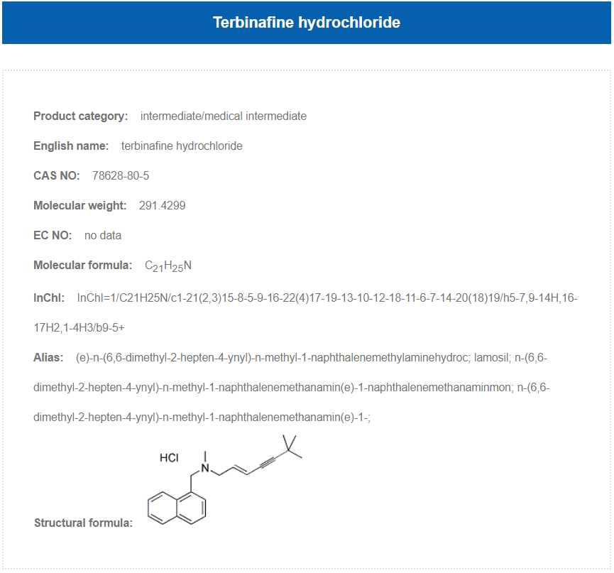 1-Chloro-6,6-Dimethyl-2-Hepten-4-yne / 3,3-Dimethyl-1-Butyne / 1-Bromo-3,5-Dimethyladamantane / 1-Methyl-Aminomethyl Naphthalene / N-Methyl-1-Naphthalenemethylamine Hydrochloride / Terbinafine Hydrochloride