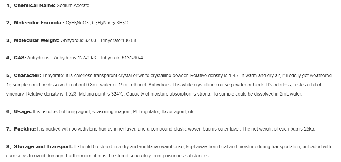 Anhydrous Sodium Acetate / CAS 127-09-3