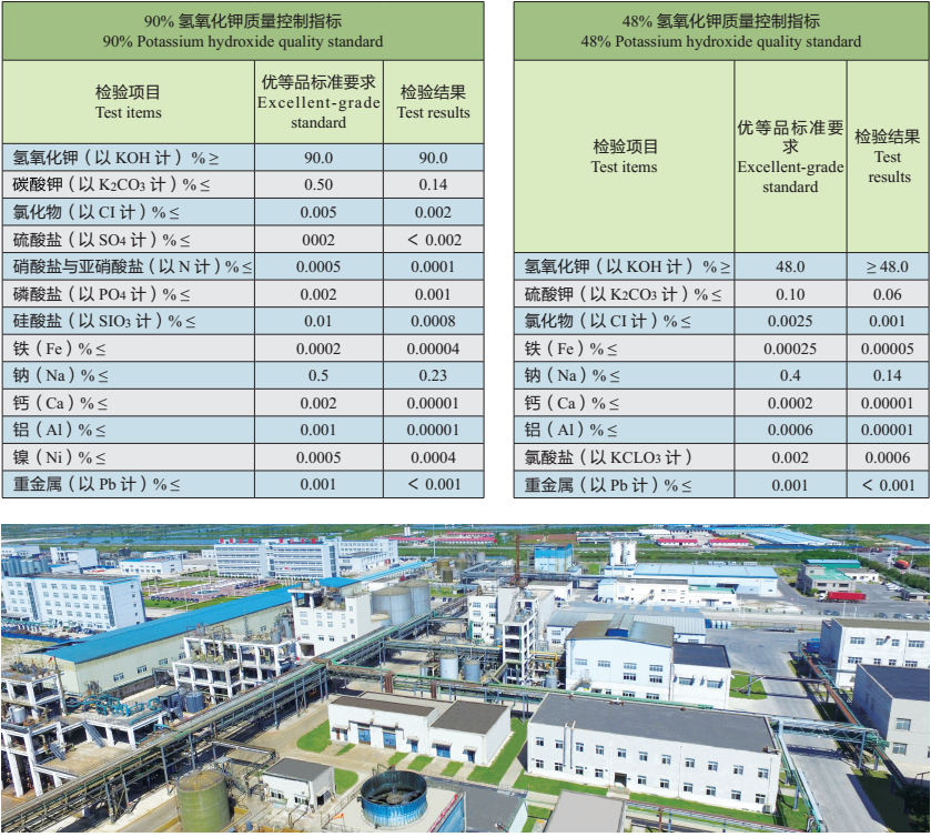 We have adopted “ion-exchange membrane” to produce potassium hydroxide and introduced Japan's high current density, natural circulation, bipolar ion-exchange membrane electrolyzer and Italy’s evaporation & concentration & packaging technology and equipment, which are both advanced. This technology is the mainstream technology in the world today in industrial production of potassium hydroxide and it has several advantages, for example, low energy consumption, high product quality, few waste water, gas and industrial residue, low cost and easy operation.
