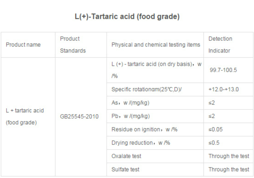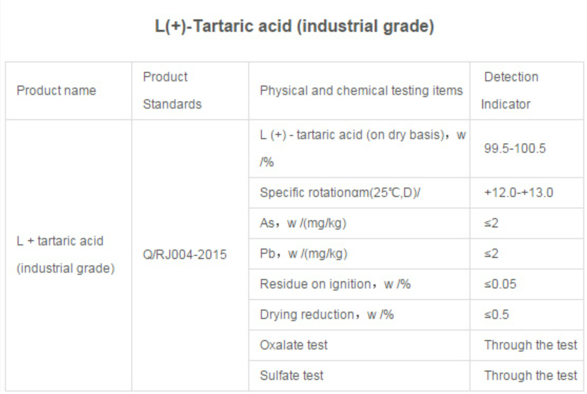 L (+) - tartaric acid and its salts products for compounds having optical rotation, produced by the fermentation, the product has a natural resistance, for acidity regulator, leavening agents in the food industry, while resolving agent used in medicine chelating and electroplating.