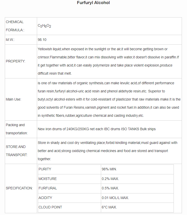 Furfuryl Alcohol / Tetrahydrofurfuryl Alcohol / Cyclohexylamine / Trichlorocyanuric Acid / Sodium Dichloroisocyanurate / Sodium Dichloroisocyanurate Dihydrate / Furfural