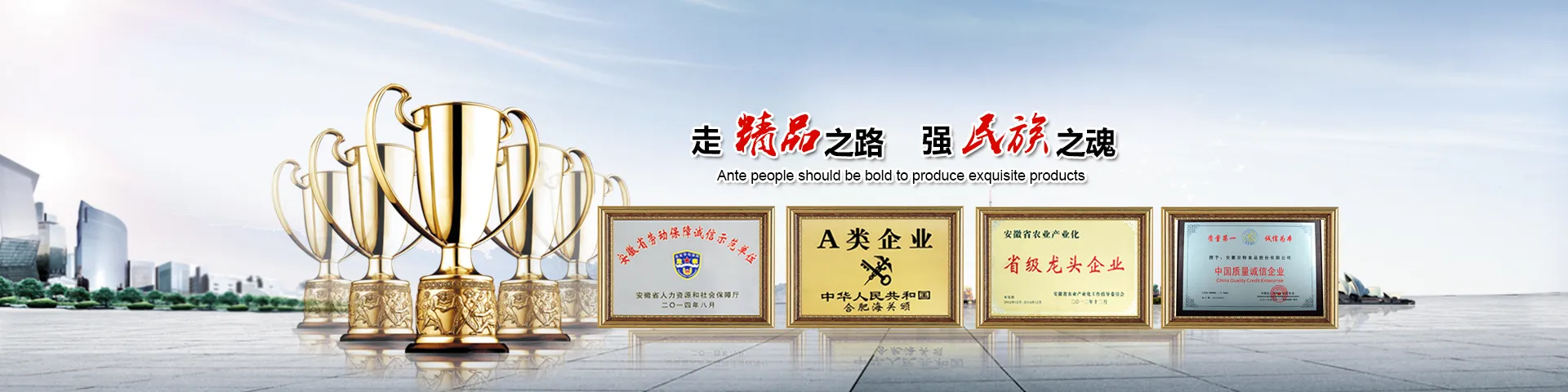 The company adheres to the principle of customer first, and insists on brand strategy. It strives to enhance quality awareness, innovation consciousness and environmental awareness. The company has passed the ISO9001:2008 Quality Management System Certification, HACCP Certification and OU Certification. Ante trademark is evaluated as famous trademark of Anhui. "Ante" super alcohol is the first choice in beverage, medicine, brewing and cosmetic industries. High-purity absolute alcohol has good reputation in reagent, chemical, aerospace, medicine, electronics and other industries. "Gold Ante" vital gluten and starch are popular among customers at home and abroad. The company has won many honorary titles as "Quality Management Award in Anhui", "standing director of the Fourth Council of China Brewing Industry Association ", "Top-100 private enterprise of Anhui", etc.
