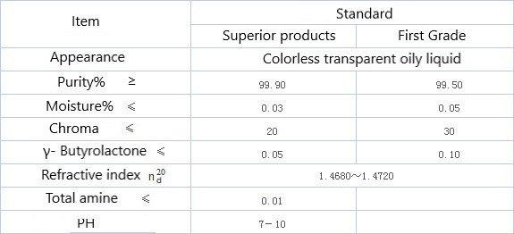 Properties: colorless transparent oily liquid with slight smell of amine. It can be miscible with water, alcohol, ether, ester, ketone, halogenated hydrocarbon, aromatic hydrocarbon and castor oil. Low volatility, good thermal and chemical stability, and can volatilize with water vapor. Hygroscopic. Sensitive to light. It is a polar aprotic solvent with the advantages of low toxicity, high boiling point, outstanding solubility, strong selectivity and good stability.