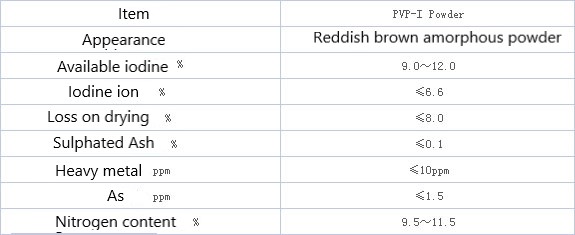 Product properties: PVP-I is a complex of PVP and iodine. It has a strong killing effect on bacteria, viruses, fungi, molds and spores. It is stable, non irritating and completely soluble in water and ethanol.