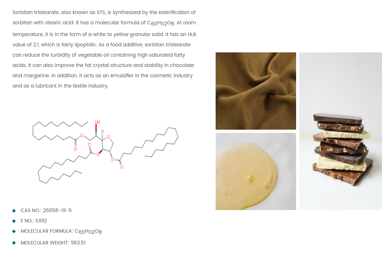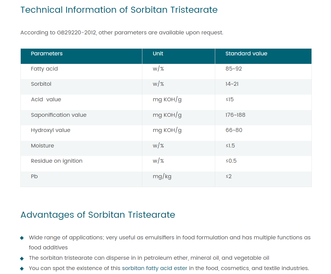 It is white to yellow granular solid at normal temperature. It can be dispersed in petroleum ether, mineral oil and vegetable oil, insoluble in toluene, ether and ethyl acetate, insoluble in water, methanol and ethanol.