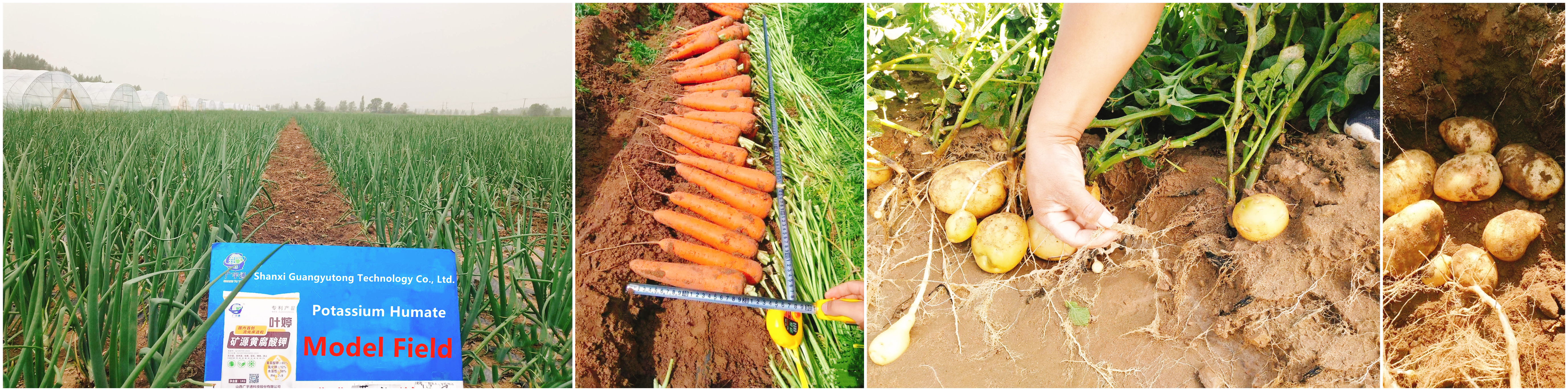 ♦ Potassium Humate can improve soil physical characteristics, improve soil aggregate structure, reduce soil compactness and achieve good condition;