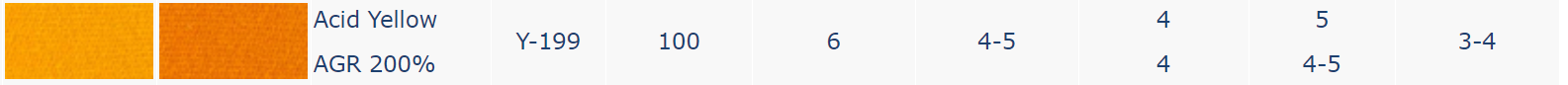 Acid yellow 199 is mainly used for dyeing nylon with excellent fastness. When it is used for blending fabrics, it does not stain other fibers, but wool is seriously stained.
