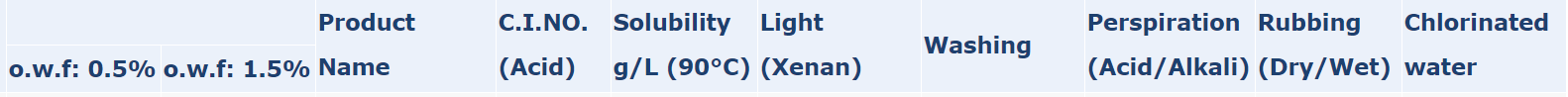 Acid dyes, used for dyeing wool, silk and nylon and direct printing of fabrics