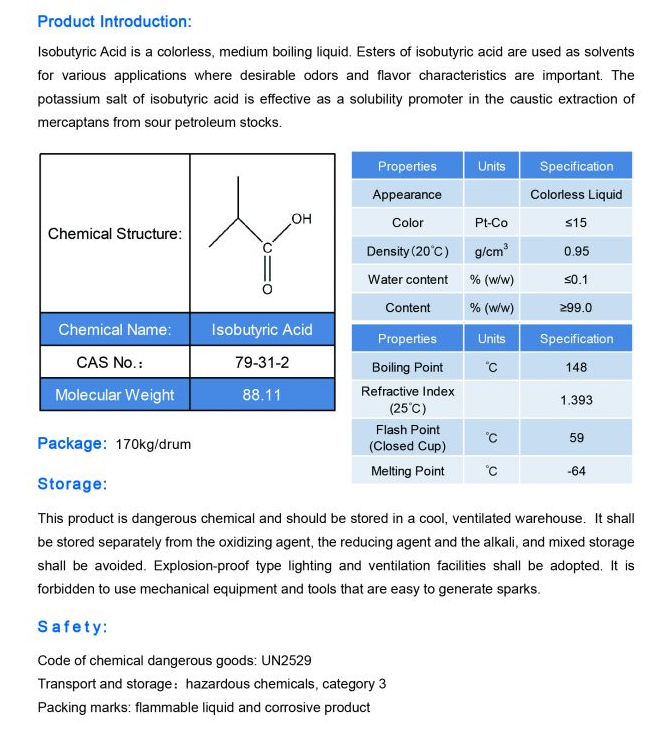 2-Methylpropionic Acid C4H8O2 Isobutyric Acid with Competitive Price