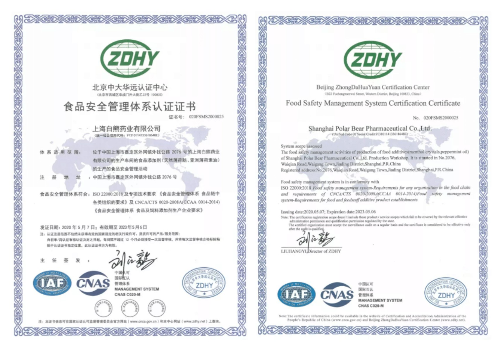 The company carried out the first GMP certification of API in 2005, successfully passed the certification and obtained the GMP certificate, and then passed the GMP re certification in 2010 and 2015 respectively. The company has built menthol and peppermint vegetable oil production workshops and two production lines. At present, the annual production capacity of peppermint series products is about 1000 tons.