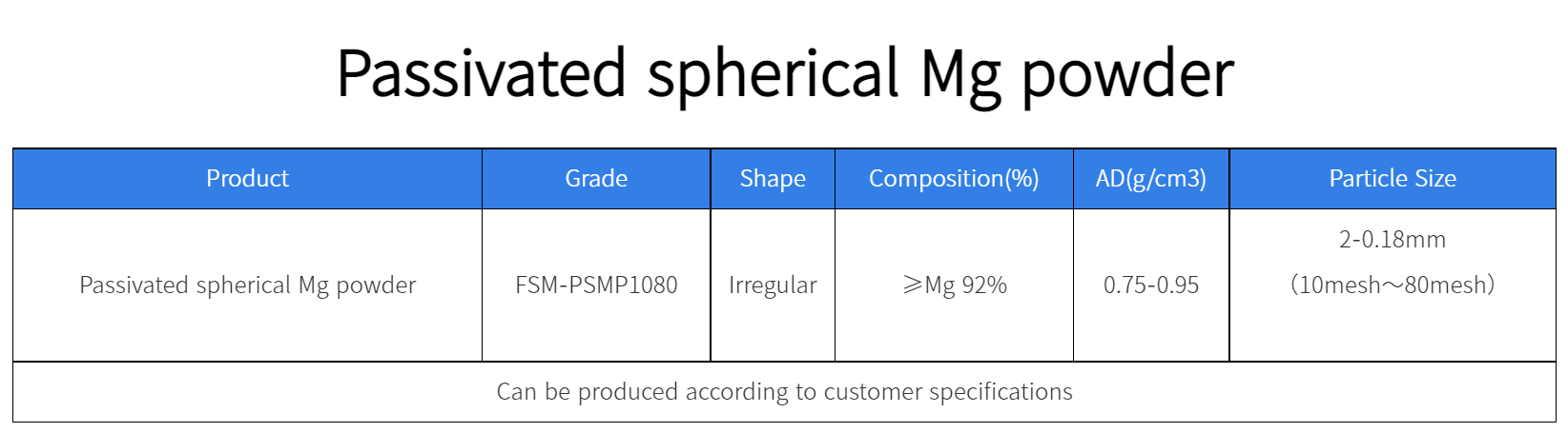 Passivated spherical Mg powder